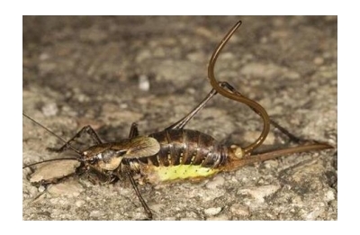 연가시는 곤충 꼽등이를 터뜨려 죽이면 나오는 기생 생물로 주택가에 출현해 화제가 된 바 있다.