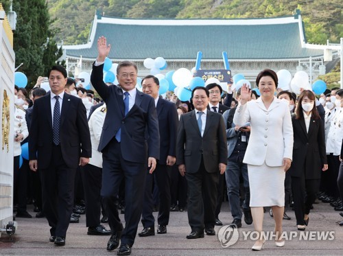 9일 자정을 기해 임기를 마친 문재인 전 대통령은 이날 오후 6시 모든 업무를 마무리하고 청와대를 떠나면서 청와대 정문 앞 분수대에 집결한 1만여명의 지지자들에게 “성공한 전임 대통령이 되도록 도와 달라”고 퇴임 인사를 건넸다.