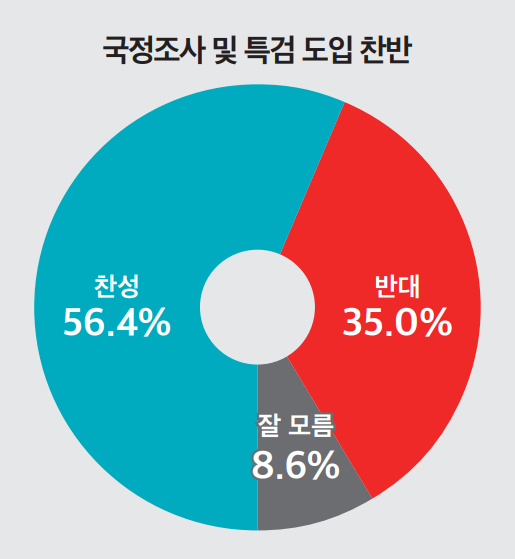 여론조사 전문기관 <미디어토마토>가 <뉴스토마토>의 의뢰로 지난 8일부터 9일까지 이틀간 만 18세 이상 전국 성인남녀 1058명을 대상으로 실시한 ‘이태원 참사에 대한 국회 차원의 국정조사 실시 및 특검 도입’에 대한 여론조사에 따르면 전체 답변자의 56.4%가 ‘찬성한다’고 답변했으며, 35.0%는 ‘반대한다’, ‘잘 모르겠다’는 8.6%로 나타났다.