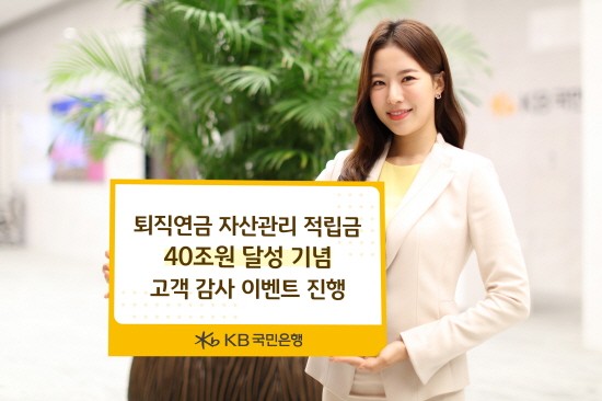 KB국민은행이 내달 15일까지 퇴직연금 자산관리 적립금 40조원 달성을 기념해 ‘퇴직연금은 역시 KB’ 고객 감사 이벤트를 진행한다고 20일 밝혔다.