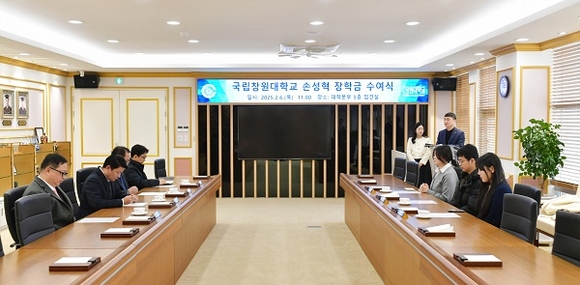 2023년 먼저 떠난 외아들이 다녔던 대학에 1억원의 발전기금을 기탁한 부모님이 아들의 학과 후배들에게 장학금을 직접 전달했다. 국립창원대학교는 6일 대학본부에서 ‘손성혁 장학금 수여식’을 개최했다고 밝혔다.