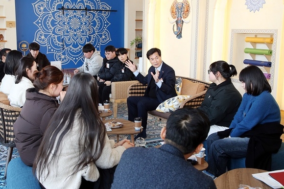 경남 밀양시는 6일 선샤인 밀양 테마파크 요가컬쳐타운에서 동계 청년 아르바이트 참여자 14명과 함께 '안병구의 소통하기 좋은 날' 첫 번째 만남을 가졌다.
