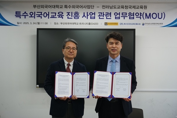 부산외국어대학교는 최근 교내 회의실에서 전라남도교육청 국제교육원과 특수외국어 교육 진흥 사업 협력 강화를 위한 업무협약(MOU)을 체결했다고 10일 밝혔다.