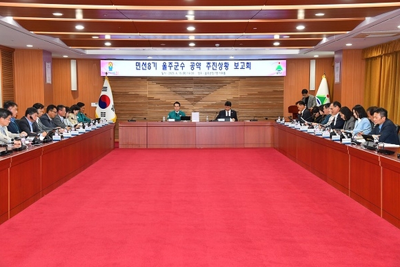 울주군은 이날 군청 이화홀에서 이순걸 군수 주재로 관계 공무원 등이 참석한 가운데 민선8기 공약사업 추진상황 보고회를 개최했다.