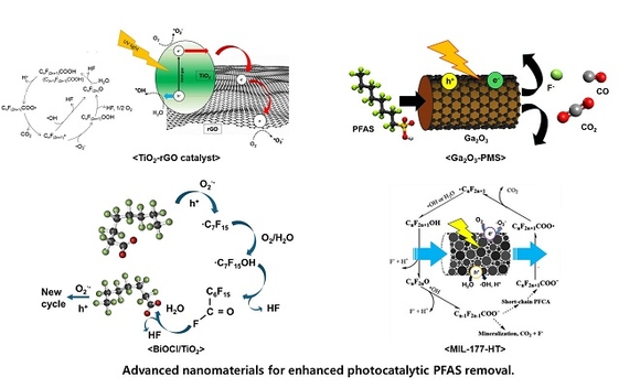 연구팀은 기존 PFAS 처리 기술의 한계를 짚고, 이를 극복할 수 있는 광촉매 기반의 신기술들을 심층 분석했다. 특히 TiO₂ 기반 광촉매의 구조 개선(도핑, 그래핀 복합화), Ga₂O₃ 및 In₂O₃ 등 차세대 반도체 소재 적용, 하이브리드 시스템(PMR, MOF 기반 복합 촉매 등)의 통합을 통한 성능 향상 사례 등을 중심으로 실용 가능성을 강조했다.