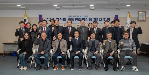 동아대학교는 동아·동서 글로컬 연합대학이 ‘1:1:1 지산학 공동전략협의체’를 출범, 지난 8일 부산시청 7층 회의실에서 ‘1:1:1 지산학 공동전략협의체 제1차 회의’를 개최했다고 9일 밝혔다.