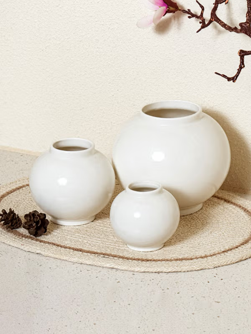 먼저 풍요로움을 상징하는 ‘달항아리’를 준비했다. 보름달을 닮은 유려한 곡선미가 인상적인 ‘유광 달 항아리 인테리어 오브제’는 유광 마감으로 표면에 은은한 광택이 흐른다.
