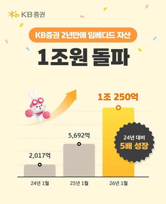 KB증권이 지난달 말 기준 임베디드 운용자산(AUM) 1조원을 돌파했다고 6일 밝혔다.