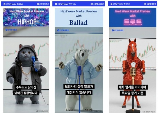 이 서비스는 신한투자증권의 MTS 내 AI 메뉴의 투자정보, 주식 화면에서 이용할 수 있다. 힙합, 트로트 등 다양한 음악 형식을 접목해 시장 정보를 쉽고 흥미롭게 전달하도록 구성함으로써 투자 정보 접근성을 높였다. 주간 시황 영상과 함께 주요 시장 이슈 발생 시 관련 AI 영상도 수시로 제공해 투자자들이 시장 흐름을 보다 신속하게 파악할 수 있도록 했다고 설명했다.