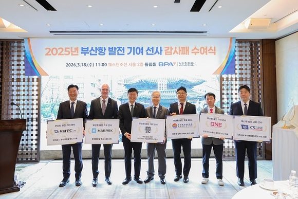 부산항만공사(BPA)가 18일 서울 웨스틴조선 호텔에서 부산항 발전에 기여한 국내외 선사들에게 감사의 마음을 전하는 감사패 수여식을 개최했다고 밝혔다.