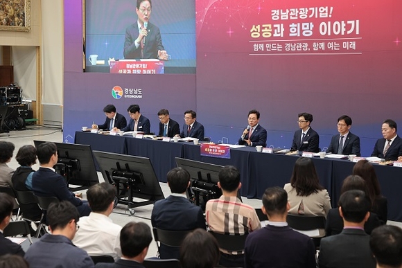 도는 27일 오후 도청 대회의실에서 박완수 도지사를 비롯해 관광기업인, 관광 분야 전공 학생 및 청년 인재, 유관기관 관계자 등 90여 명이 참석한 가운데 '2026 경남 관광기업 성공과 희망 이야기' 간담회를 가졌다. 이번 간담회는 관광 현장의 애로사항을 청취하고, 향후 관광 정책의 방향성을 논의하기 위해 마련됐다.