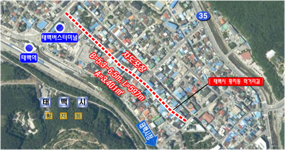 태백시는 총사업비 4억 3,900만 원을 투입해 태백시 먹거리1길, 먹거리2길 일원에 대해 노후 판석을 제거하고 아스콘 포장(L=597m)과 도로 열선 설치(L=100m)를 추진할 예정이다.