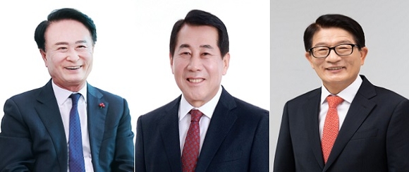 국민의힘 (왼쪽부터) 박동식 사천시장 후보, 나동연 양산시장 후보, 하학열 고성군수 후보. (사진=국힘 경남도당 제공)