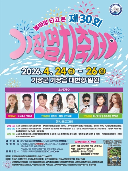 올해로 제30회를 맞이하는 기장멸치축제는 기장멸치축제추진위원회 주관으로 열리는 기장군 대표 축제이다. 전국 최고의 수산물 축제이자 기장을 대표하는 축제로, 특히 올해는 개최 30주년이라는 뜻깊은 해인 만큼, 예년보다 더욱 다채로운 프로그램으로 준비됐다.