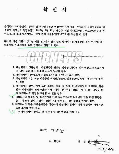 이에 대한 근거로 지난해 8월 5일자로 작성된 이상우 회장 측과 누리서울타워 간의 확인서를 공개했다.
