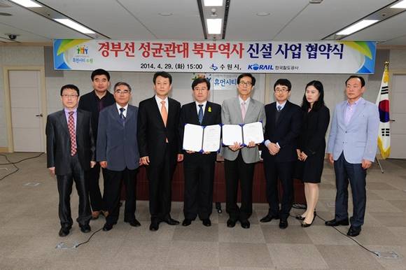 수원시(시장 염태영)가 29일 한국철도공사의 경부선 성균관대 북부역사 신설사업에 관한 협약을 체결하면서 성균관대역 복합역사 개발이 본격화 된다.