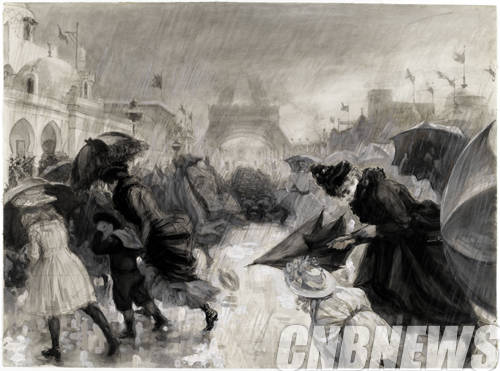 ▲샤를 폴 르누아르, '폭우속에 1900년 만국박람회를 찾은 방문객들'. 1900©Photo RMN / Musée d'Orsay - GNC media, 2014.
