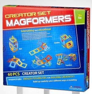 ‘맥포머스 크리에이터 세트’는 삼각형·사각형·마름모 등 기본도형 6종 60개로, 맥포머스를 처음 접하는 아이들이 평면도형이 입체도형으로 변하는 과정을 자연스럽게 익힐 수 있도록 구성됐다.