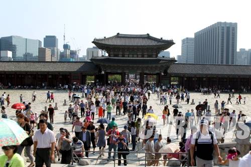 ▲경복궁 관람을 위해 입장하고 있는 국내외 관광객.(사진=왕진오 기자)