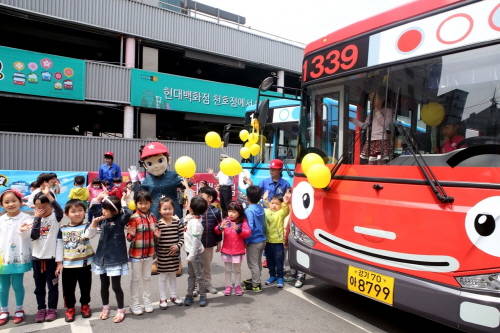 천호점 옥외주차장에 타요 버스를 전시해 방문 고객 누구나 탑승 및 사진 촬영할 수 있도록 했고 8일까지는 오전 11시부터 오후 6시까지 만화 주인공의 친구인 ‘가니’ 버스를 운행한다.
