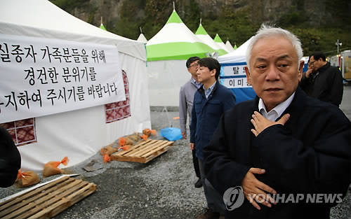 김 공동대표는 '실종자가 몇 명 남지 않으면 (선체)인양을 할까봐 걱정이다. 애들을 모두 수습한 뒤 해 달라'는 한 실종자 가족의 요청을 받고 "조금 전에 다른 어머니에게도 약속했다. 꼭 그렇게 하겠다"고 말했다.