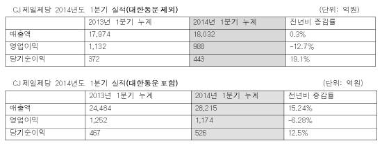 매출(대한통운 제외)은 1조8032억원으로 전년대비 소폭(0.3%) 상승했으며, 영업이익은 국내 소비침체 및 국제 라이신 판가 하락 등의 여파로 전년 대비 12.7% 감소한 988억원을 기록했다.