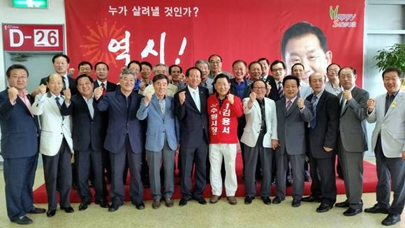▲수원시의정회 회원과 김용서 새누리당 수원시장 예비후보