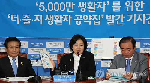 ▲새정치민주연합 박영선 원내대표는 13일 오전 국회에서 취임이후 처음으로 열린 원내대책회의에서 5월 국회에서 세월호 관련 상임위를 모두 열어 국민의 답답한 마음과 분노를 풀어내는 '세월호 국회'를 만들어야 한다고 주장했다. 박 원내대표가 이날 6·4 지방선거 정책공약집 기자간담회에서 정책공약을 설명하고 있다.(사진=연합뉴스