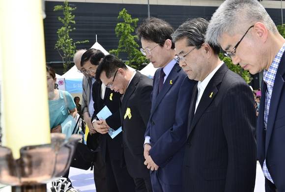 이재정 민주적교육개혁 단일경기교육감 후보는 18일 5.18 광주민주항쟁 34주년 기념일을 맞아 기념식에 참석하고 모란공원의 민주열사 묘역을 찾아 참배했다.