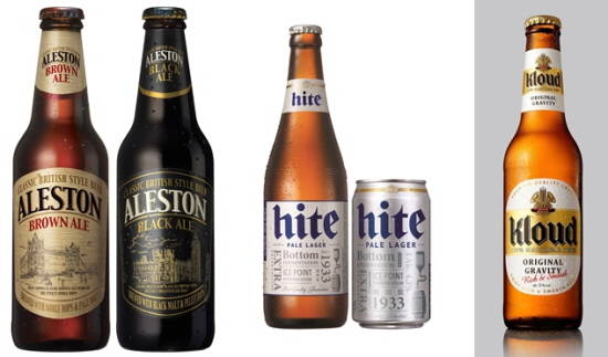 ▲사진 왼쪽부터 오비맥주 ‘에일스톤’, 하이트진로 ‘뉴 하이트’, 롯데주류 ‘클라우드’