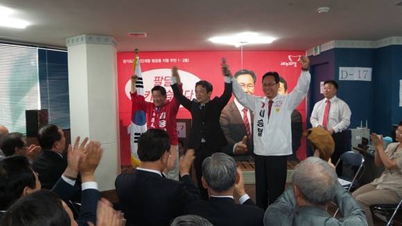 이날 개소식에는 남경필 새누리당 경기도지사 후보와 김용서 수원시장 후보.각 향우회 회장과 사회단체장.그리고 선거사무소를 가득 매운 팔달구민들이 대거 참석해 이승철 경기도의원 후보의 선전을 기원했다.