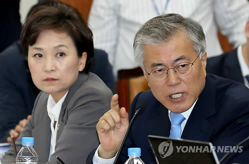 ▲문재인 의원이 19일 국회에서 열린 세월호 참사관련 기획재정위원회에서 질의하고 있다. 왼쪽 김현미 의원.(사진=연합뉴스)