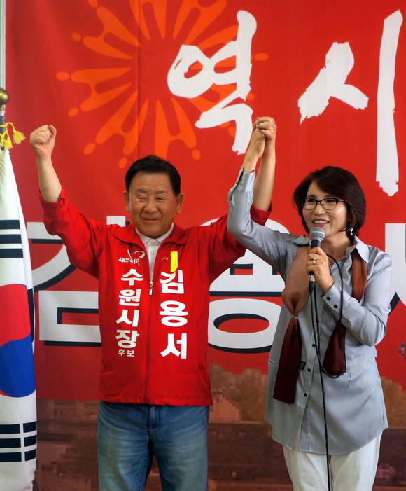 김용서 후보는 21일 오후 2시 수원시 팔달구 중동 선거사무소에서 새누리당 광역·기초의회 입후보자 12명과 함께 ‘안전한 경기도, 행복한 수원’ 건설을 위한 지방선거 승리를 외쳤다.