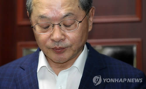 ▲안대희 국무총리 후보자가 28일 오후 정부서울청사 창성동 별관에서 후보직 사퇴 발표를 한 뒤 고개를 숙이기 전 눈을 감고 있다.(사진=연합뉴스)