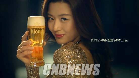 광고영상에서 클라우드 맥주를 연상케 하는 금색 드레스를 입은 전씨는 ‘100% 맥주 원액’ ‘물타지 않았다’ ‘그래서 전지현은 ’클라우드‘를 마신다’며 3가지 강렬한 멘트를 날렸다.