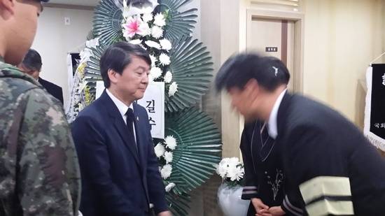 ▲부친상을 당한 최성 고양시장 후보의 가족들을 조문하고 있는 안철수 대표