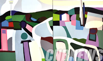▲이본느보그, 'Namsan Park, Spring (dyptich)'. acrylic on canvas,162x260 cm, 2014.