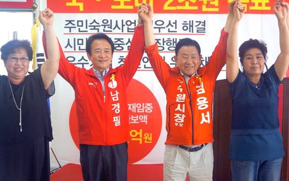 김용서 후보는 31일 오후 선거사무소에서 남경필 경기도지사 후보와 재한동포 300여명이 참석한 가운데 ‘수원 재한동포 유권자 연맹 김용서 후보 지지선언’ 행사를 개최했다.