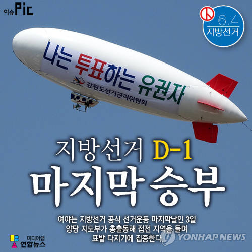 여야는 6·4 지방선거 공식 선거운동 마지막 날인 3일 현재 7∼8곳의 광역단체장 선거가 초접전 양상을 보이고 있다고 판단하고 양당 지도부가 총출동해 접전 지역을 돌며 무당파와 부동층의 표심을 잡는데 사활을 걸고 있다.