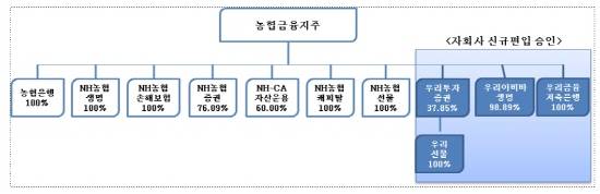 ▲자회사 편입이후 농협금융지주 구조도(자료제공=금융위)