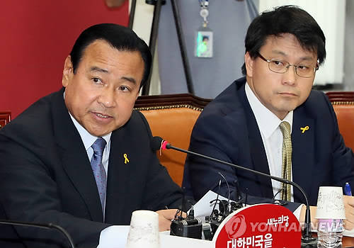 ▲이완구 새누리당 비상대책위원장 겸 원내대표(왼쪽)가 5일 국회에서 열린 비상대책위원회의에서 "두려운 마음을 절대 잊지 않고 국가 대개조를 기필코 이룩하겠다"고 말하고 있다.(사진=연합뉴스)