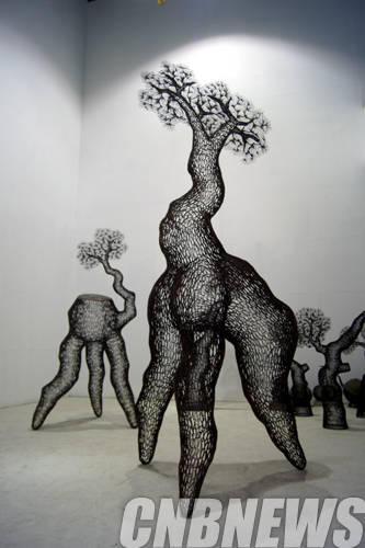▲이길래, '삼지송'. 120x112x292cm, 동 파이프, 동선 산소용접, 2014.