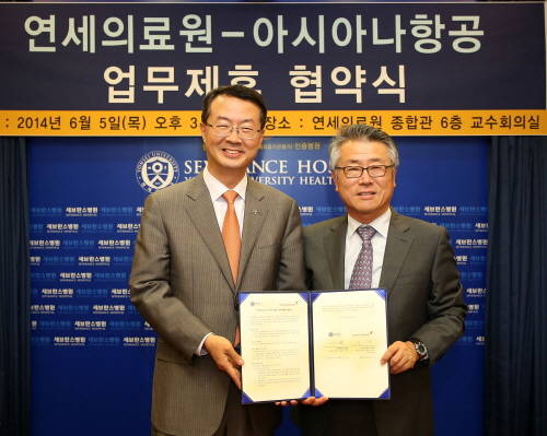 협약식에는 아시아나항공 김수천 사장과 연세의료원 이철 의무부총장 겸 의료원장이 참석, 향후 공동 건강검진 프로그램을 개발해 해외 의료관광을 활성화하고 홍보 및 마케팅 활동을 함께 전개해 나가기로 했다.