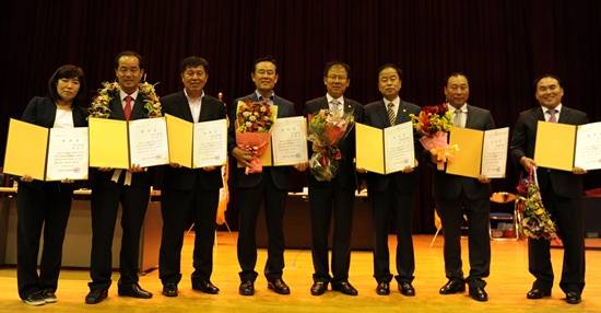 ▲좌측부터 박경수, 박길서, 정덕영, 안종섭, 이희창, 황영희, 홍성표, 김종길 당선자