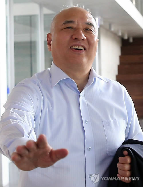 ▲문창극 총리 후보자가 10일 오후 서울 관악구 서울대학교 ibk커뮤니케이션 센터를 나서며 밝은 표정을 짓고 있다 (사진=연합뉴스)