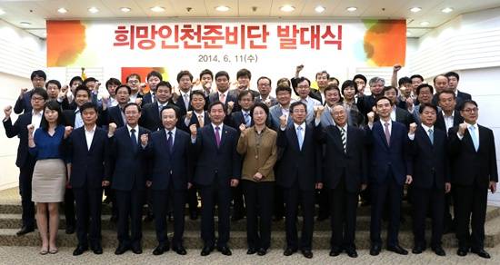 ▲유정복 인천시장 당선자는 희망인천준비단 발대식을 갖고 본격적인 인수인계에 들어갔다.