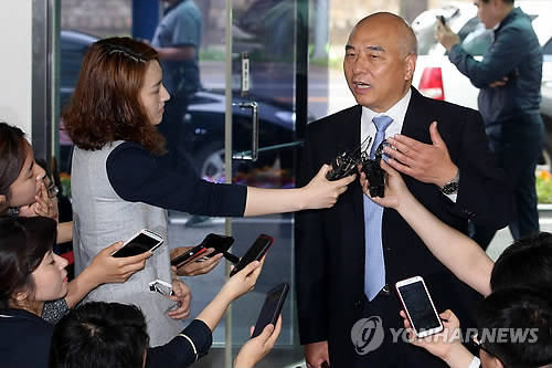 ▲문창극 국무총리 후보자가 13일 오전 서울 종로구 효자로 정부서울청사 창성동 별관으로 출근하며 기자들의 질문에 답하고 있다.(사진=연합뉴스)