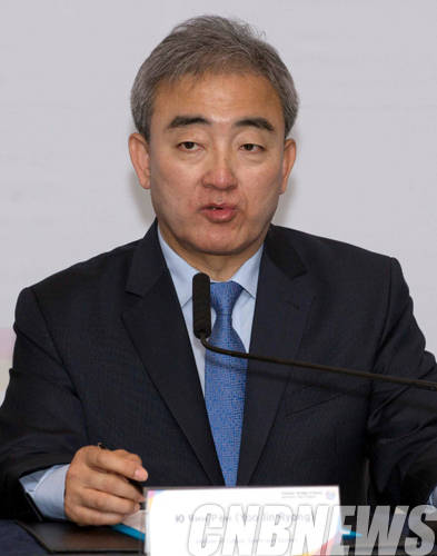 이날 유진룡 문화체육관광부 장관이 기자들의 질문에 답변하고 있다.