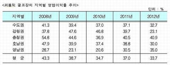 그린피 수익 등 현금유입이 양호한데다, 낮은 세율에 회원권 상환의 부담이 없다. 그러다보니 전반적인 경기침체에도 불구하고 대부분의 퍼블릭 골프장들이 영업이익이 30~40%대에 달하는 등 상당한 흑자 기조를 유지하고 있다. (아래 도표 참조)