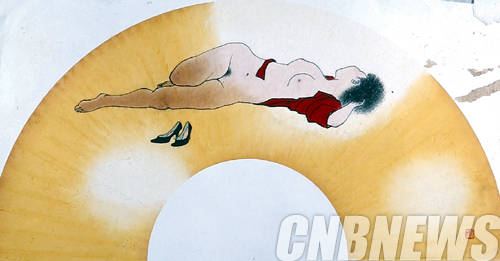 ▲최재종, '누드'. 40x80cm, 선면 한지채색, 2014.
